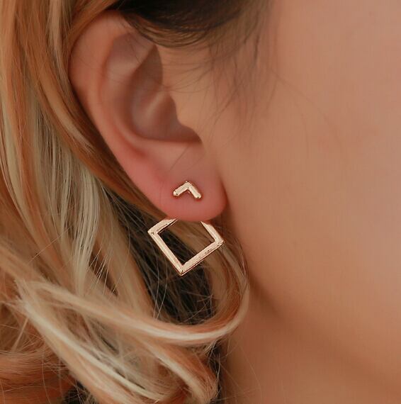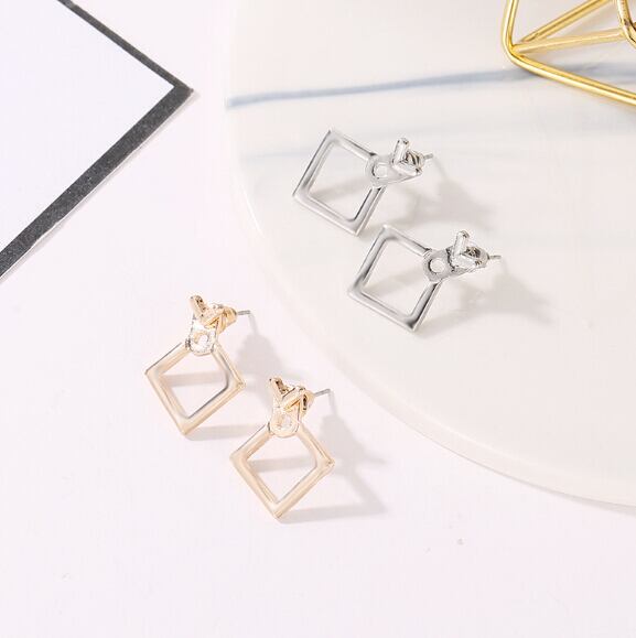 幾何正方形のデザインで、優しく女性らしい雰囲気を演出し、オシャレなピアス。